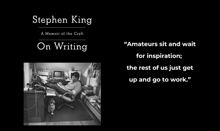 This line is the essence of King’s approach to writing: don’t wait for the perfect moment—commit to the craft, and the magic will follow.